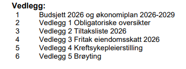 - Budsjett og økonomiplan vedtas som det fremgår av vedlegg.
