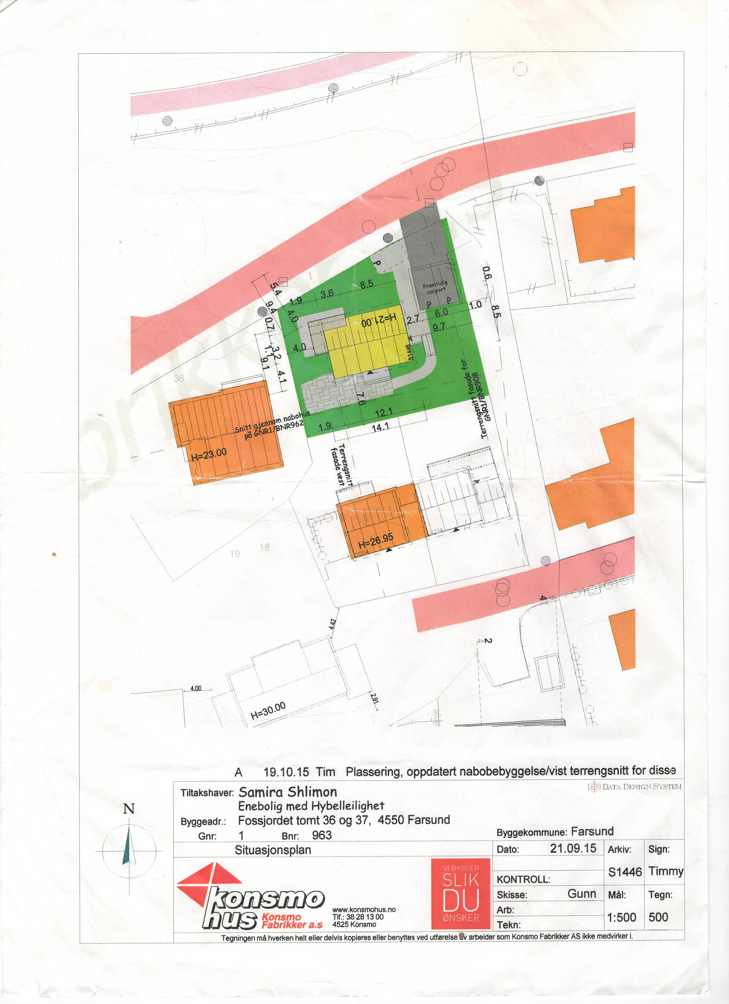 Klage på vedtak - Avslag på dispensasjonssøknad for oppføring av garasje med hybelleilighet i 2 etg og godkjenning av oppføring av påbygg på inngangsparti på eksisterende bolig - 1/963 Fossjordet 33. Tiltakshaver Samira Bakoz Shlimon