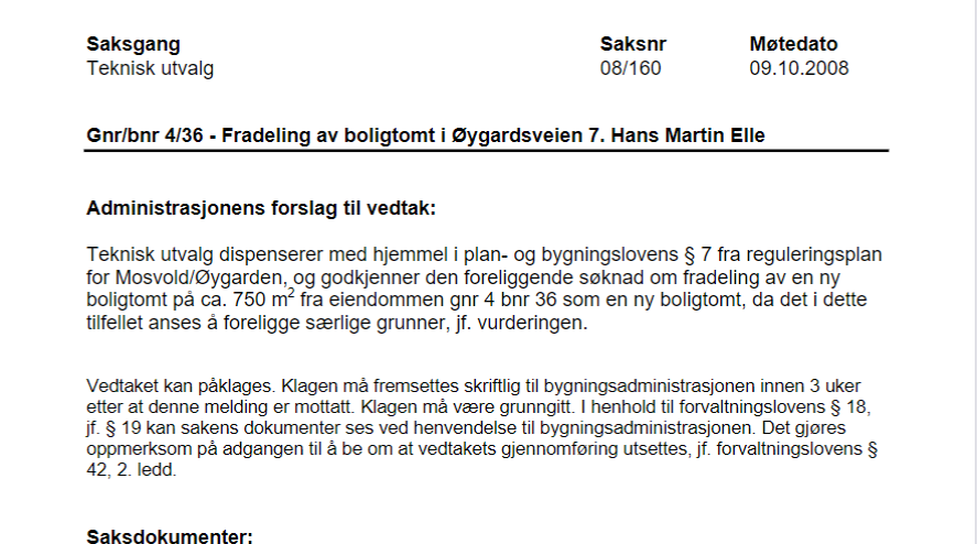 Søknad om tomannsbolig 4/434, Øygardsveien