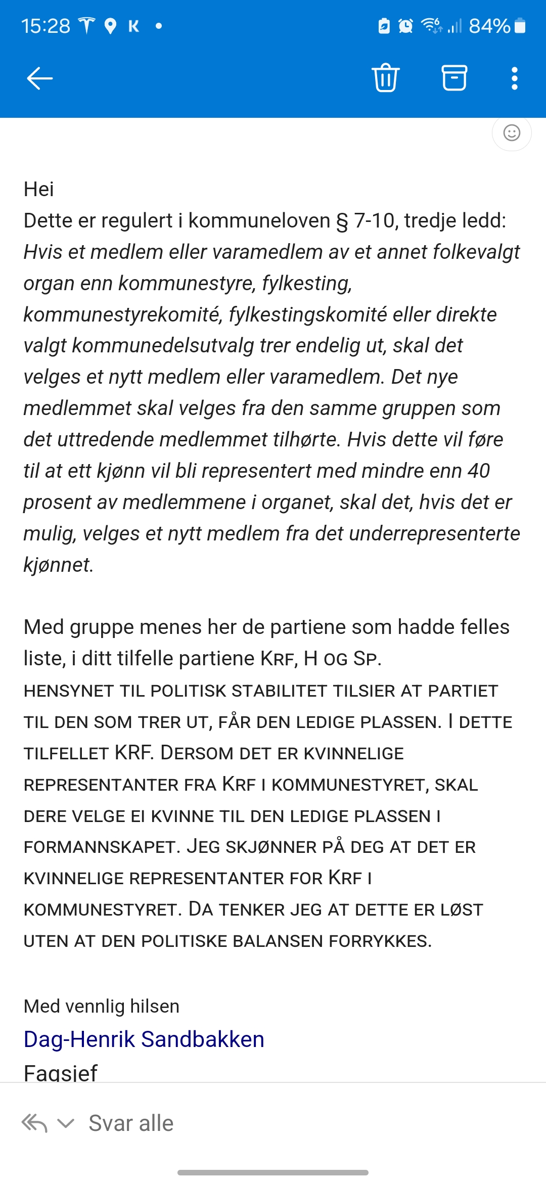 Det er etter tilråding frå KS ved Dag-Henrik Sandbakken som me fekk svar av i dag.