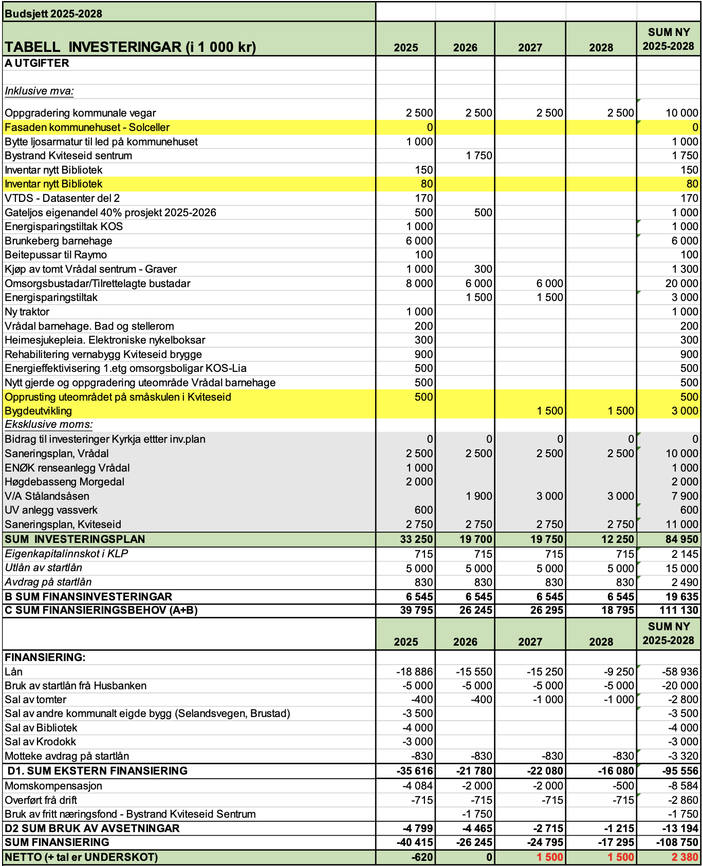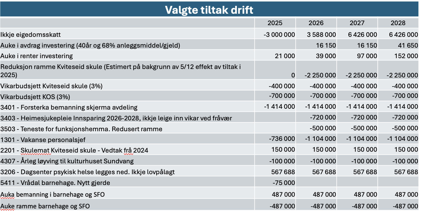 1. Handlingsprogram og økonomiplan Handlingsprogram for 2025 og økonomiplan 2026 - 2028, med vedlegg (taldel) skal leggjast til grunn for Kviteseid kommune si verksemd i perioden.