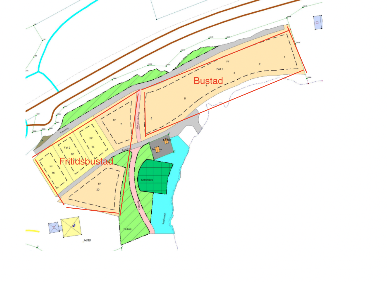 - Pkt 2.6: Før det settes i gang opparbeiding av tomt 1-7, 14-16 og 20, må det settes opp sperring/skilting/hinder mot gbnr 14/82.